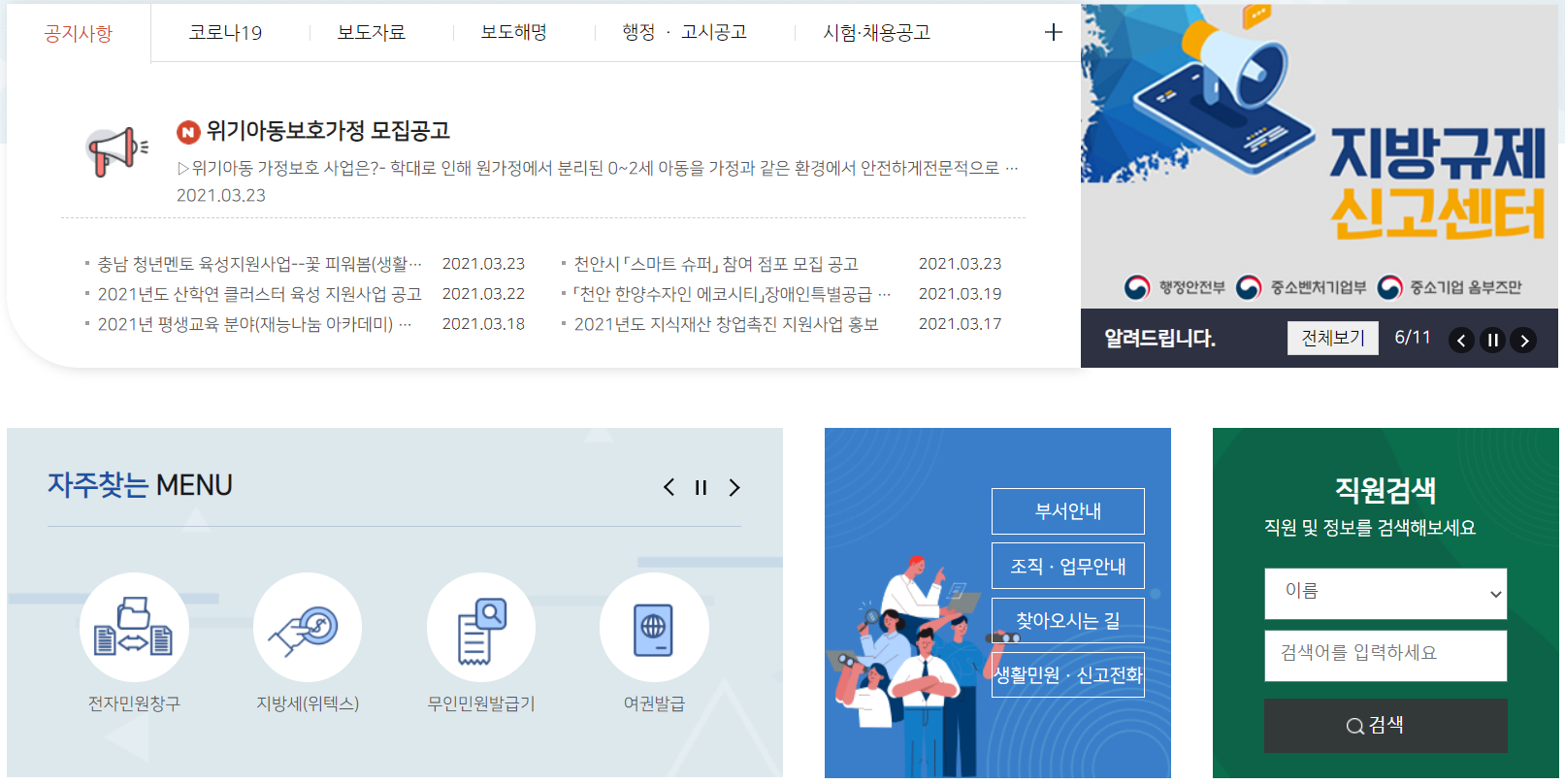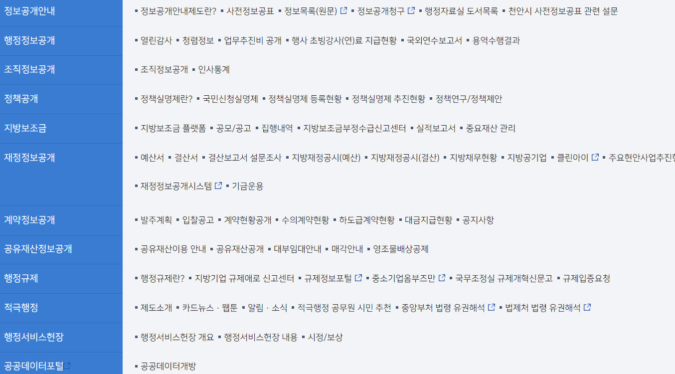 천안시청 행정정보 바로가기