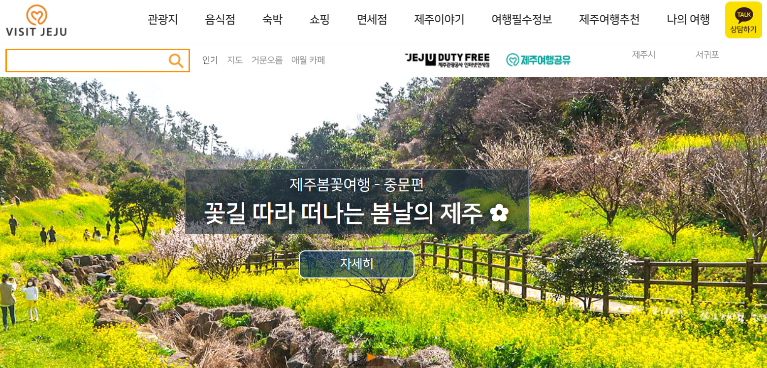 또한 제주도청 홈페이제서 도움이 되는 것이 바로 화면의 우측 상단에 있는 관광정보 입니다. 지자체 공식 홈페이지에서 제공하기 때문에 다른 경로를 통해 입수하는 정보보다 정확하다고 할 수 있습니다.