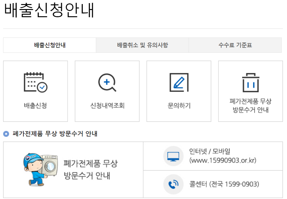 의외로 잘 모르시는 메뉴가 바로 대형 생활폐기물 신청안내입니다. 대형폐기물은 사전에 신고를 해야 배출이 가능하기 때문에 배출법과 절차를 알아두시면 좋습니다.